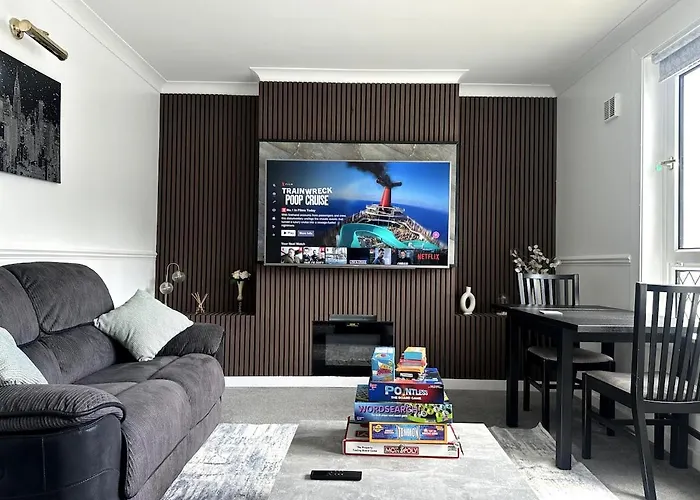 De woning is binnen 10 minuten rijden van Clyde Auditorium en op 5 km afstand van Kunstgalerie en museum van Kelvingrove. Op het terrein zijn er 2 badkamers, 2 slaapkamers en een complete keuken.